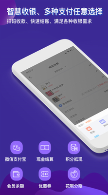 【移动收银终端】:集成扫码支付、挂账管理、订单修改等18项收银场景功能