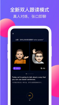 1、母语环境模拟:精选英美真实生活场景短视频,搭配智能跟读系统,帮助用户掌握地道发音