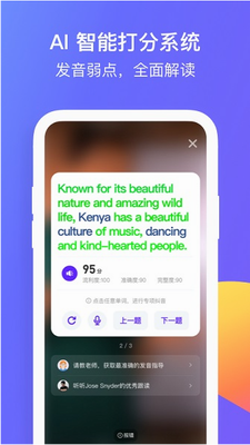 3、多维能力评估:独创语音识别系统从发音准确度、语调流畅性等维度进行实时评分反馈