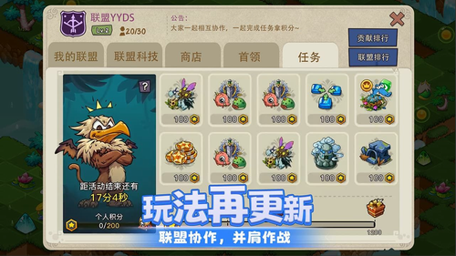 1、跨服联盟战:每月开启的赛季制团队竞赛,需要成员协同合成指定系列幻兽完成战略目标