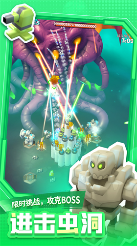 动态战场系统引入天气干扰要素,离子风暴会降低自动瞄准精度,陨石雨可被巧妙引导攻击敌群。超过60个精心设计的关卡中,包含9场史诗级BOSS战,每个外星巨兽都具备独特的弱点机制。每周轮换的星域挑战模式,为资深玩家提供检验战术配置的绝佳舞台。