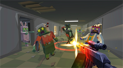 采用3D像素渲染技术,角色受伤时的布料破损效果与武器开火的光影粒子表现细腻。每个变异体都设计有16种动态表情,当玩家使用特殊武器时会触发专属的滑稽反应,这种反差设计为紧张的战斗增添趣味性。