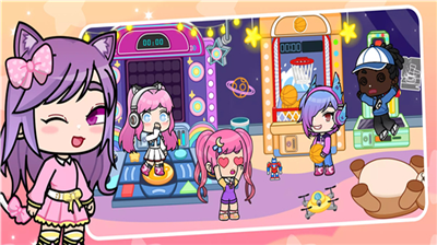 游戏设置六大主题区域,从海滨度假区到都市商业中心,每个场景都配备独特交互机制。玩家可通过拖拽、点击等简单手势完成角色换装、房屋布置等操作,系统会根据孩子的选择实时生成动态剧情,培养其应变决策能力。