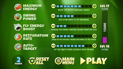 2.多维成长体系:升级八项专属技能树,涵盖移动速度、蛛丝强度、环境感知等模块,支持个性化培养路线