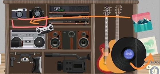 建议按照"从下至上"的顺序摆放物品:首层放置封装好的唱片,每张需保持间距2cm以上;中层摆放游戏手柄时,要将摇杆朝向内侧;顶层收纳盒需先打开卡扣才能放入相机镜头。特别注意收纳盒必须与隔板边缘保持平行,倾斜超过5度会导致系统判定失败。