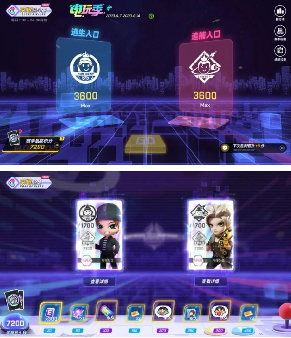 本届赛事采用双轨制奖励系统,玩家通过提升追捕者/逃生者双阵营积分即可解锁对应奖励。系统根据每日10:00-22:00的巅峰对决表现进行动态评分,黄金段位及以上玩家可参与全天候竞技较量。建议参赛者优先选择主力阵营重点突破,同时保持副阵营基础活跃度。