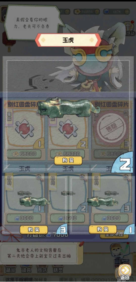 3、鉴宝交易技巧:解锁鬼市功能后,建议每日预留2000金币采购三件未鉴定文物。通过观察纹饰包浆可初步判断真伪,真品增值空间可达500%以上