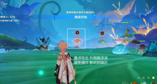 3、首轮攻势需集中火力清除外围漂浮灵。这类敌人具备远程骚扰能力,放任不管会导致防御目标持续受损。操控风蕈兽使用元素战技制造吸附漩涡,将分散敌人聚集至火蕈兽攻击范围。
