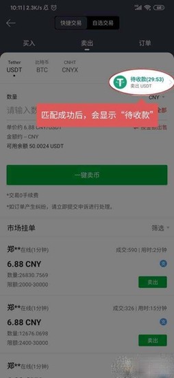 输入预设的资金密码完成身份核验,系统将启动智能撮合引擎自动匹配买方订单。匹配成功后,交易状态将变更为"待收款"。