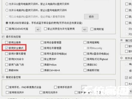 当需要恢复安全模式功能时,只需取消对应禁用选项并保存设置。退出程序前建议点击后台运行选项保持配置生效,完成操作后再次重启设备即可正常使用所有系统功能。