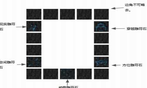 完整建造传送装置需准备以下核心组件:13块蕴含远古能量的雕纹石砖,作为传送门框架的基石;能量雕符石(用于激活空间坐标)、方位雕符石(定位维度参数)、空间雕符石(稳定通道结构)、现实雕符石(平衡物质转换)各1枚,最后还需配备穿越雕符石作为启动密钥。