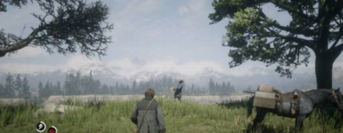 首先需要前往马蹄湾高地营地(Horseshoe Overlook),该区域位于达科他河畔的悬崖台地。在此会遇到自称"寻宝专家"的冒险家马克西莫,这位NPC正计划前往美国寻找新宝藏,且次日即将启程离开。